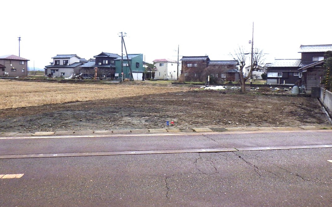 静かなエリアの空き地です。前面道路の向こうには、田んぼが広がっており、この辺りから見える山々の景色は美しいです!!