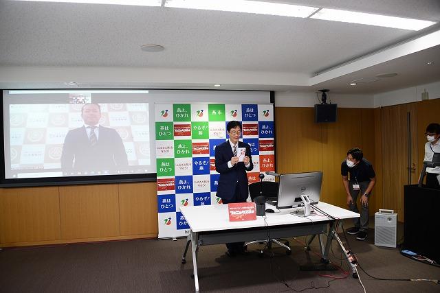 県をまたいでの移動が制限されている中、リモートでの感謝状授与式を執り行いました。マスコミからもたくさん取材を受けています。
