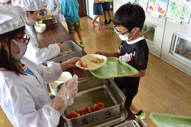 - 寄付いただいた桃太郎トマトが給食で提供されました(7月6日 火曜日)
