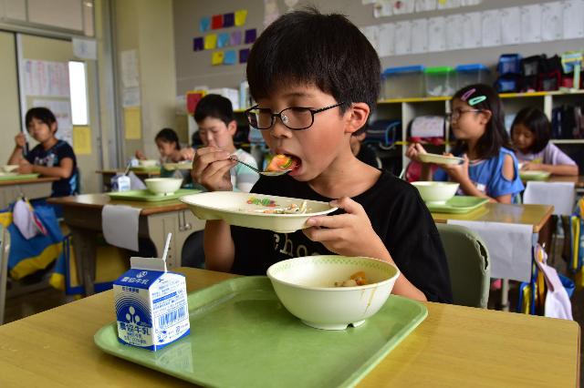 給食を食べて、お腹も元気もいっぱいに。「ごちそうさまでした!」
