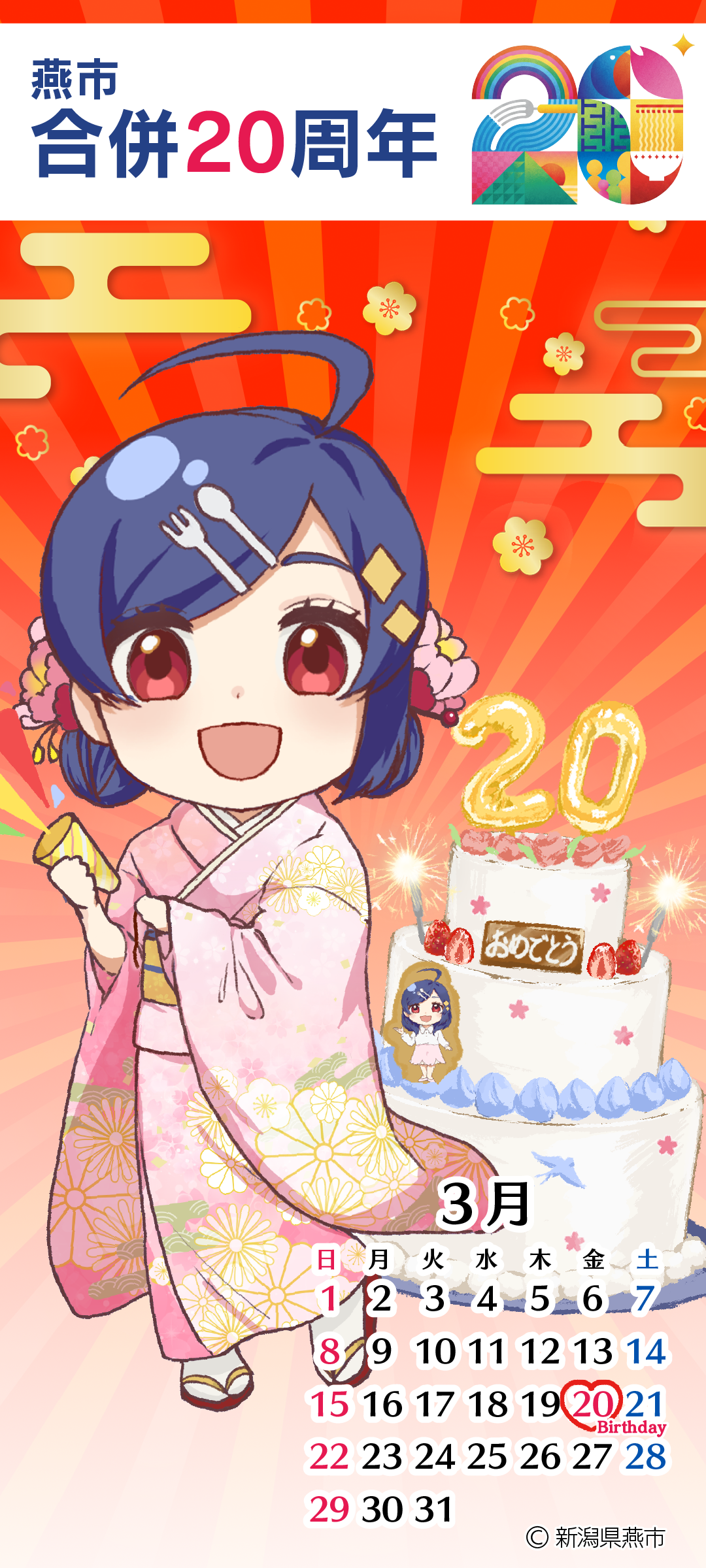 3月のカレンダーは「燕市合併20周年」。
