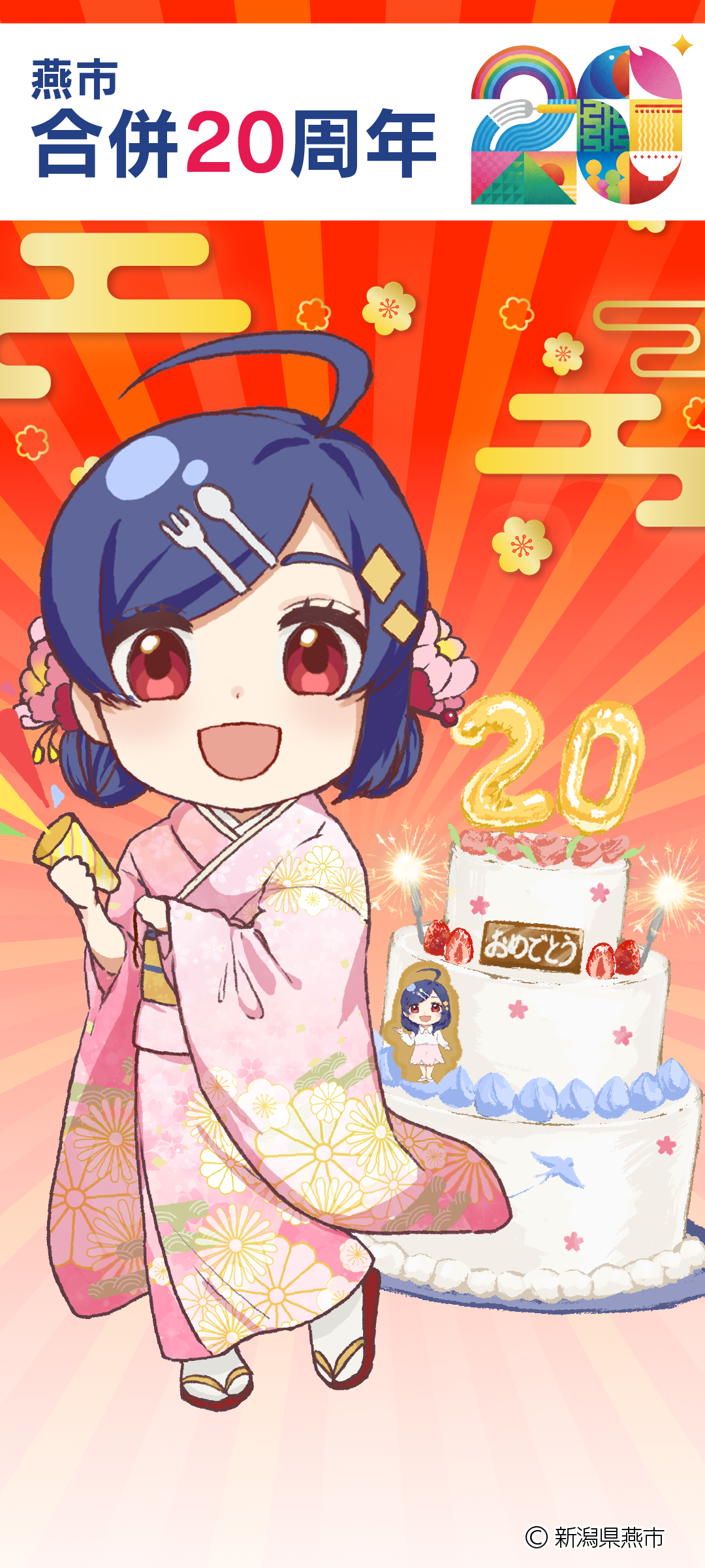 燕市オリジナルキャラクター「桜咲ユメ」は、燕市合併20周年である、3月20日(祝日)に20歳の誕生日を迎えます。