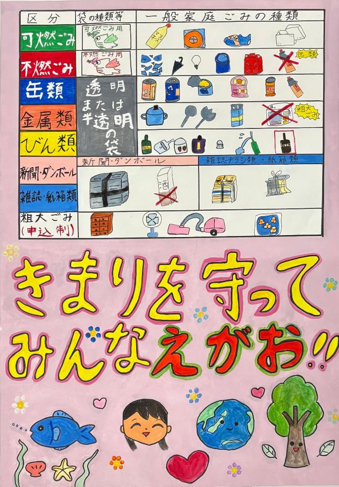 このコンクールは生活に身近な、みんなで取り組める環境保全活動を一層推進していくため、市内の小学校4年生からポスターを募集するもので、「ごみの減量」「リサイクル」「省エネ」「環境破壊や汚染の防止」などをテーマにしています。