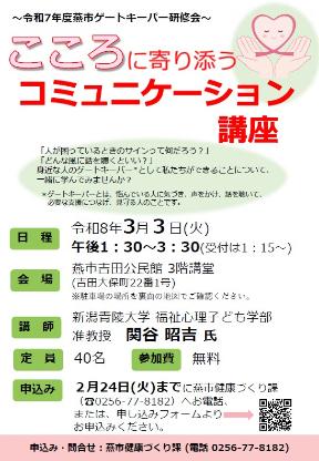 こころに寄り添うコミュニケーション講座(令和7年度ゲートキーパー研修会)のご案内